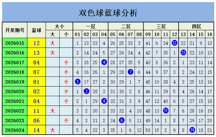 上期蓝球开出四区号码14